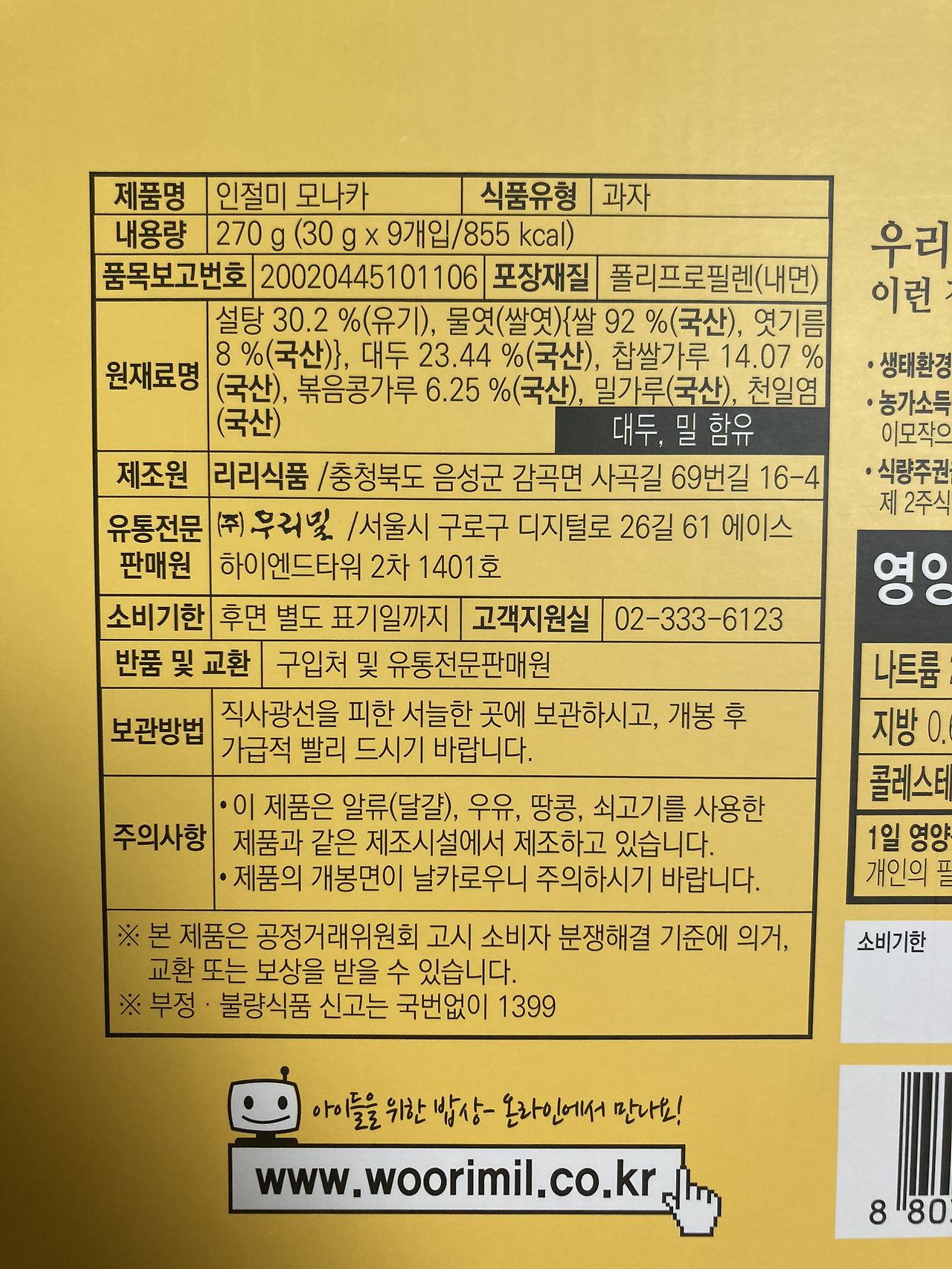 아무튼, 옥수수 물엿 대신 국내산 쌀엿이 들어간 모나카. 내가 좋아하는 품목은 아니지만 태오를 보기 위해선 당충전은 필수니까ㅎㅎ
