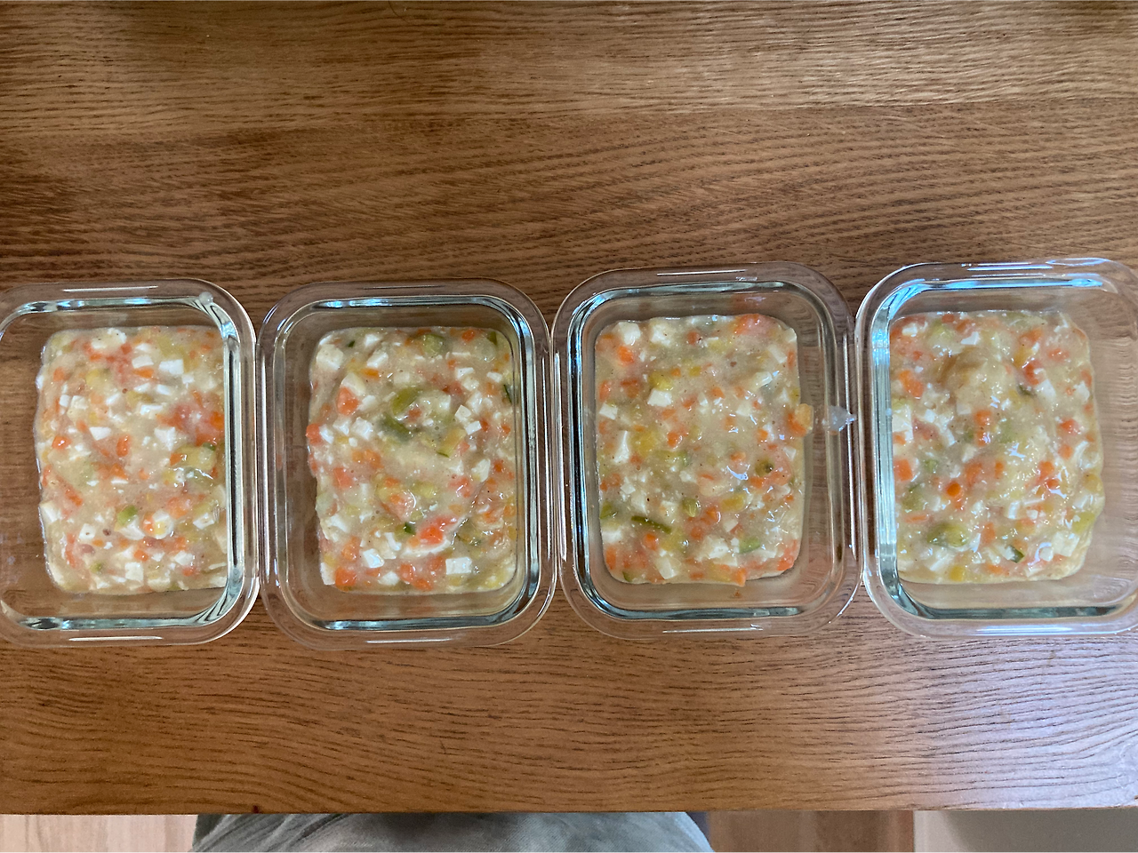 오늘 조금 주고 한끼 분량씩 냉동해둔 태오 이유식, 두부채소오트밀죽