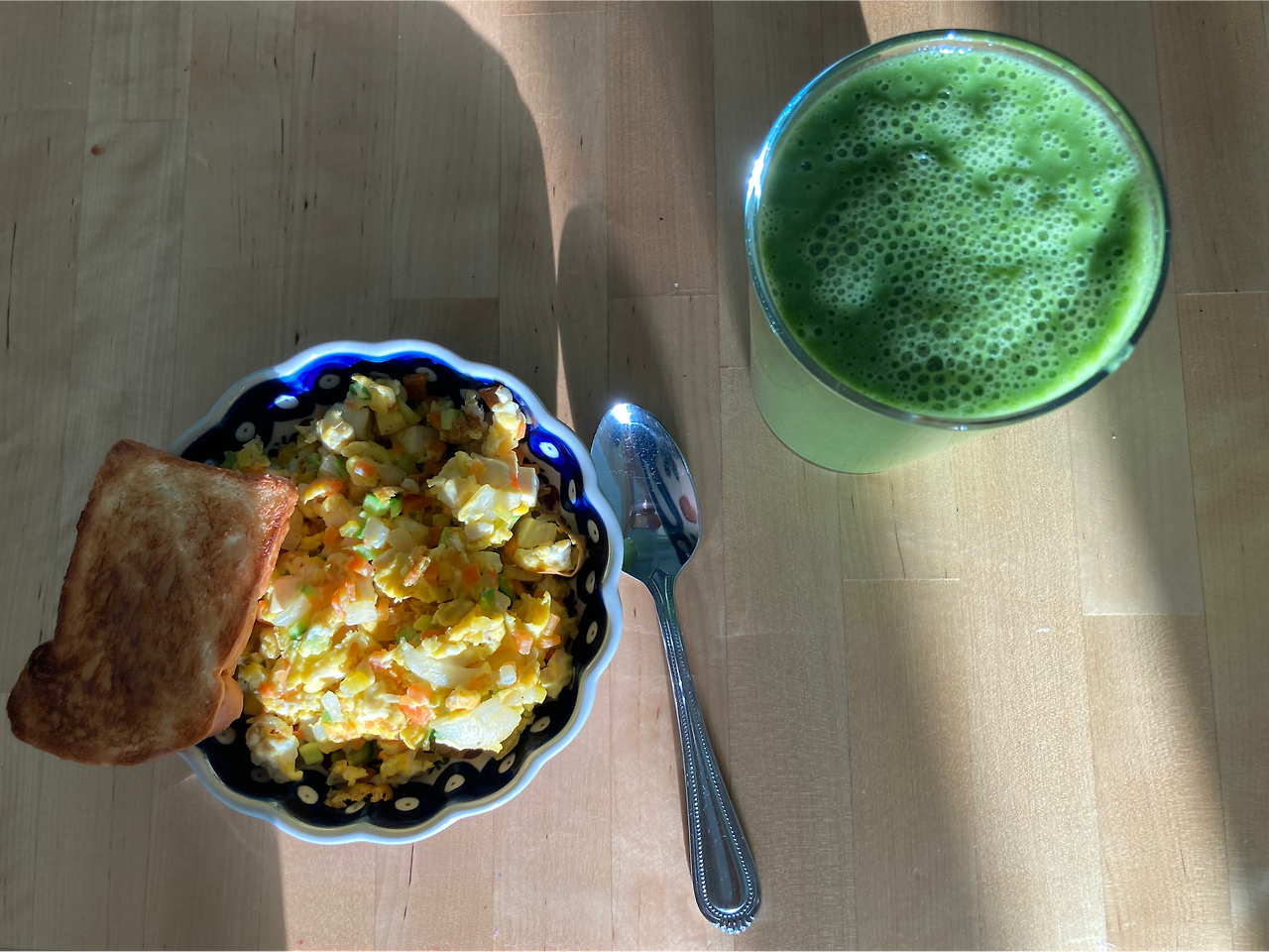 내 저녁 : 오믈렛 (양파, 애호박, 당근, 두부, 달걀), 식빵, 스무디(바나나, 케일, 셀러리, 오트밀크)