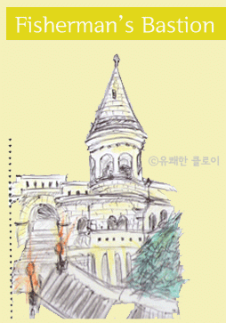 ⓒ클로이의순간포착 - 왼쪽 : 독특한 분위기를 자아내던 한밤 중의 어부의 요새, 오른쪽 : 스케치북에 색연필로 담은 어부의 요새.