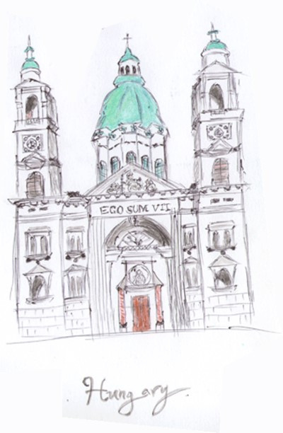 ⓒ클로이의순간포착 - 왼쪽 : 이름모를 부다페스트 성당, 오른쪽 : 스케치북에 색연필로 담은 평화의 성당