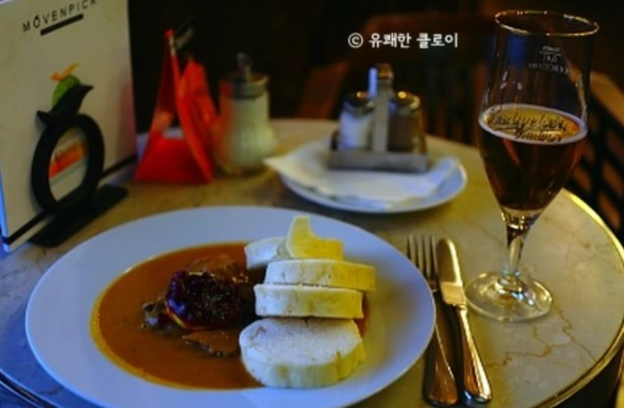 부드바이저 한 잔과 체코의 전통음식인 슈비츠코바를 주문했다.