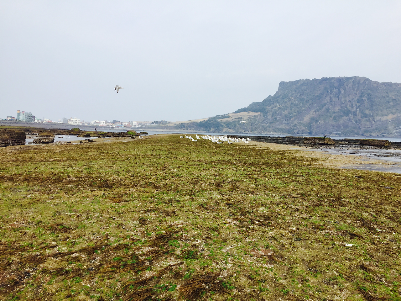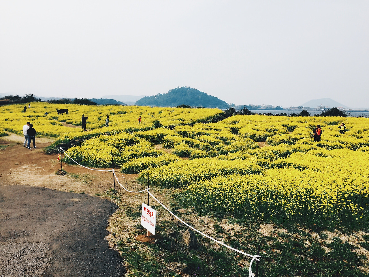 충분히 이곳을 다 둘러본 다음에는 그 주변을 향해 걷기 시작했는데 이상한 바닷가 지형에 이끼가 껴있는 곳을 발견했다. 여기가 성산 광치기 해변! 물론 나중에야 이름을 알게 되었지만 이름을 지어주고 싶을 정도로 아름다웠고 성산일출봉과 함께 보면서 다시 한번 ‘이곳은 한국인가?’라는 생각을 하게 되었다. 그러는 찰나 더 충격적인 것을 발견하게 되었다. 엄청난 유채꽃밭이 눈앞으로 촤르르 펼쳐져 있었다. 심지어 그 가운데에는 말이 돌아다니고 있었다. 본능적으로 저기로 발이 움직였다. 그리고 유채꽃밭은 밧줄 같은 것으로 막혀있었는데 입구를 찾아보니 한 아저씨가 돈을 요구한다. 아 여긴 사유지였던 것이다. 그래서 입장료 따로 말과 포토타임 따로 돈을 지불했던 기억이 남는다. 돈은 사실 아깝지 않았다. SNS에 여행그룹에 나오는 유채꽃에서 말과 함께 사진을 찍을 수 있어서 행복했다. 아 최근 뉴스를 통해 코로나 19로 인해서 꽃 축제들이 열리지 못한다는 소식을 접했다. 그리고 그 꽃을 의료관계자 분들에게 선물한다는 아이디어를 봤는데, 한국이 참 자랑스럽다 :)