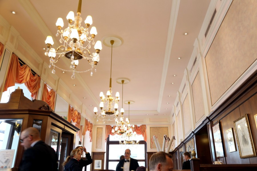 유서깊은(?) 유럽의 카페들은 종업원들도 귀티가 난다고 해야하나. 모두 정장을 입고 나비넥타이를 단정하게 메고있다. 우리나라와 다른 점이 있다면, 자리를 안내해줄때까지 대기하다 들어가는게 일반적이라는 점이다. 샹들리에도, 은은한 주황색 조명도, 멋지게 차려입은 종업원들도, 그리고 가게 인테리어까지. 모두 좋았다