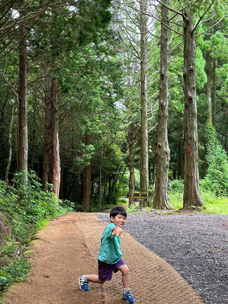 평소 아무 목적 없이 걷자고 하면 워낙 싫어하던 아이라 오름이나, 숲길 트래킹을 싫어할 줄 알았는데, 막상 해보니 곧잘 걷고 따라왔다. 한 달 살기 초반에 갔을 때보다 후반으로 갈수록 걷는 힘이 좋아지는 걸 보는 것도 쏠쏠한 재미였다. 이렇게 커가는구나 싶기도 하고. 가장 놀랐던 곳은 서귀포 치유의 숲에서 3시간 30분을 내리 걸었을 때였다.