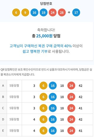 “축하해~ 로또 다섯 줄 맞았다며!”