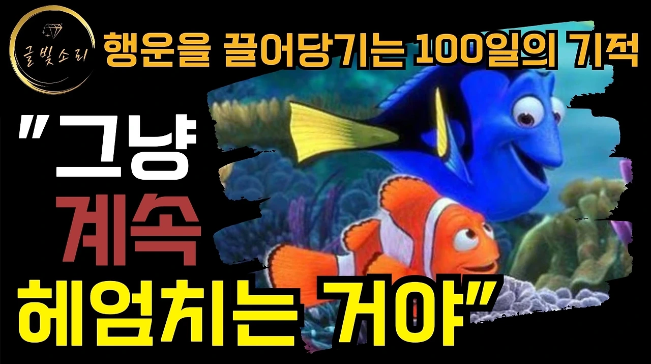 혹시 어떠한 일이 생각대로 잘 되지 않으신가요? 그렇다면 니모를 찾아서에 등장하는 도리의 한 마디를 실천해 보는 건 어떨까요? 아직 포기하기엔 너무 이르니까요.그냥 무식할 정도로 될 때까지 해보는 겁니다. 분명 더 나은 내일이 기다리고 있을 거예요.