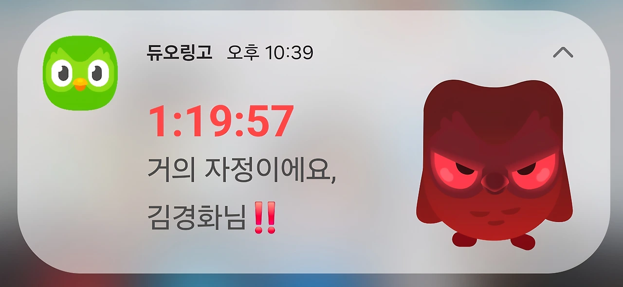 4. 혹시라도 놓칠까 봐 매일같이 알림을 보내주는 듀오링고에게도 감사하다.