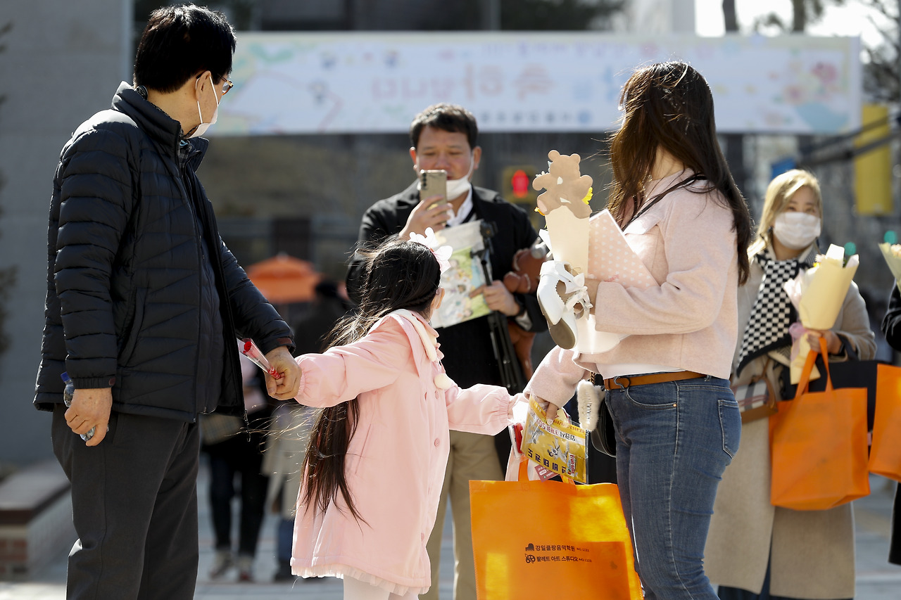 지난 3월 서울의 한 초등학교에서 열린 입학식에서 1학년 학생들과 학부모들이 강당으로 이동하고 있다. 문재원 기자