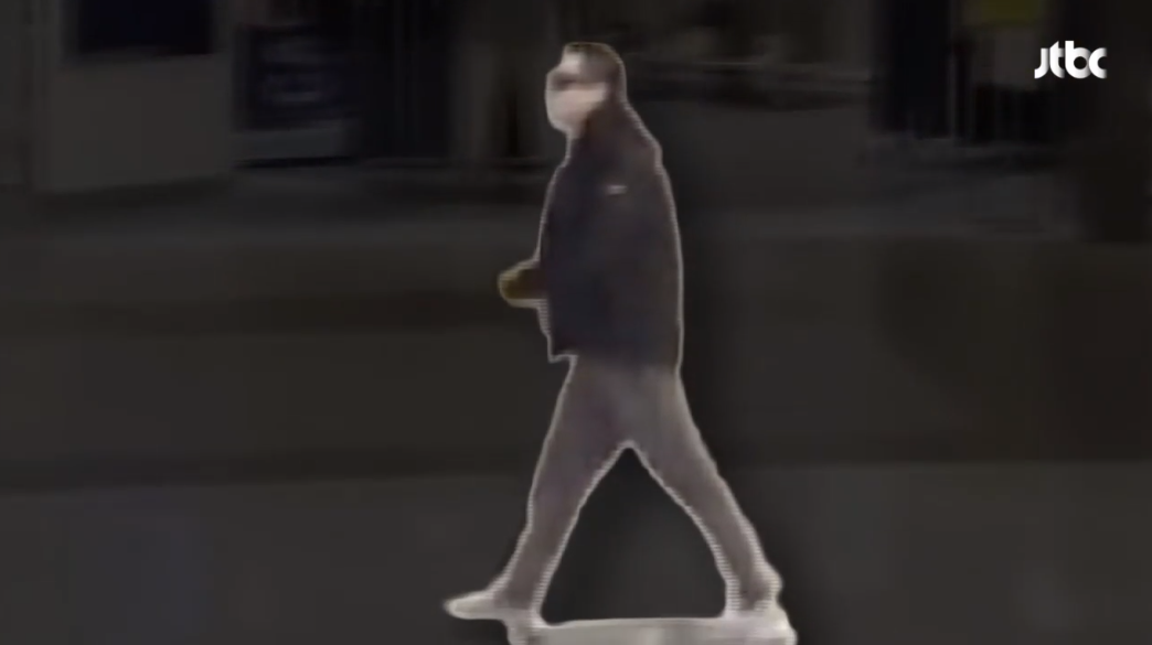 JTBC 뉴스룸이 8월4일 저녁 공개한 분당 서현 흉기난동 피의자의 모습. JTBC는 이 장면 직후 화면엔 피의자 이름과 나이를 적시했다.