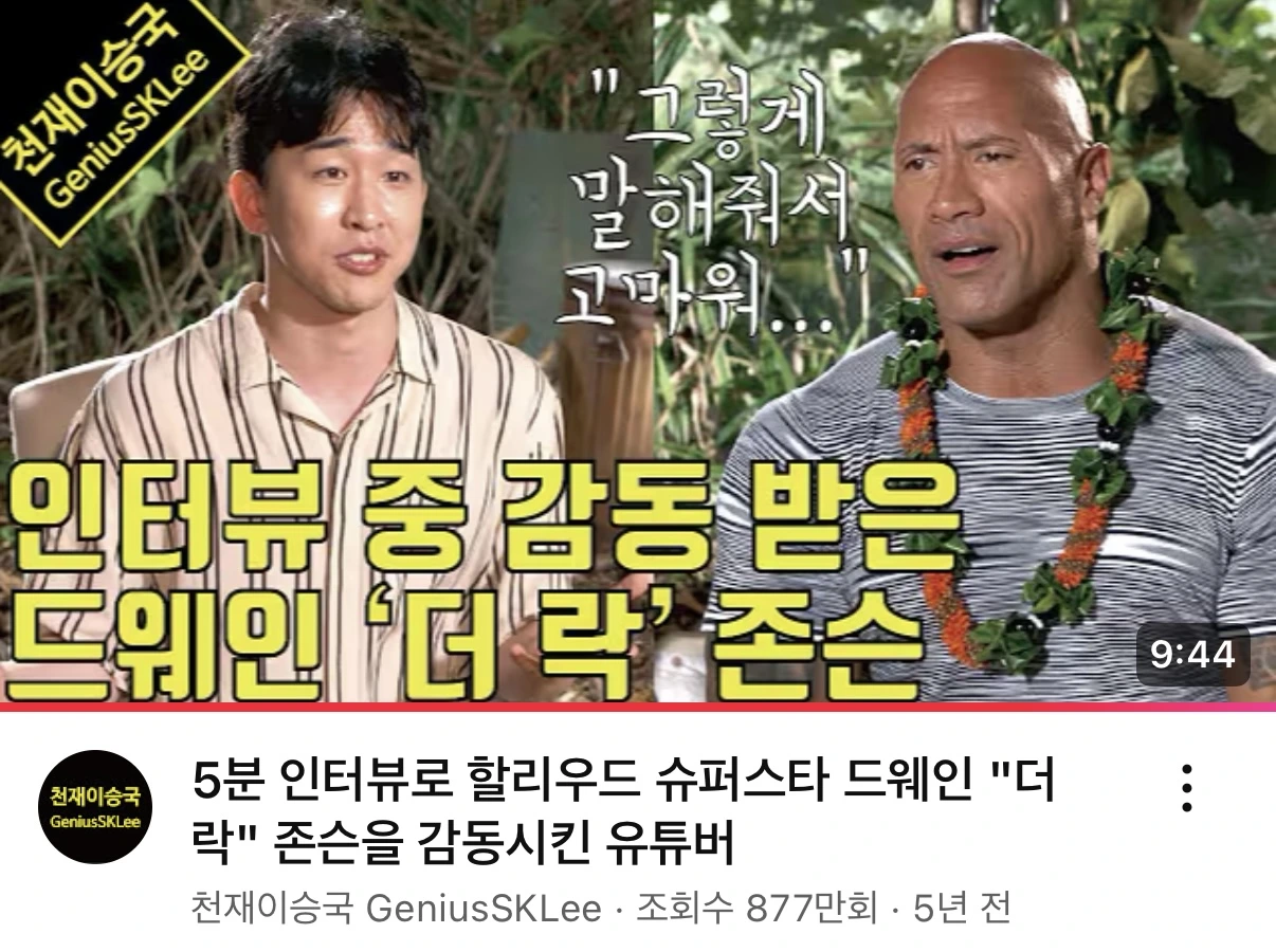 유튜브 채널 <천재이승국>(이승국)을 즐겨 본다. 영화 리뷰와 배우 인터뷰를 주로 업로드하는 채널이다. 강한 자만 살아남는다는 영화 유튜버 사이에서 공고한 브랜드 가치를 지녔다. 시장 내 1위여서가 아니다. 구독자 수는 ‘지무비’ ‘고몽’ ‘김시선’ 등 다른 채널이 더 많다. 이승국이 특별한 점은 인터뷰 질문이 좋다는 평판에 있다.
