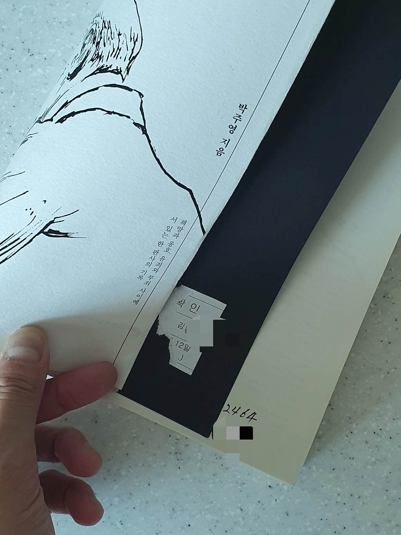 박주영 판사의 책 〈어떤 양형 이유〉도 기억난다. 박 판사는 사려 깊은 판결문을 쓰는 것으로 유명한 이다. 헌책방에서 구입한 그의 책엔 ‘2464’라는 번호와 ‘김OO’의 이름이 적혔다. 첫 페이지엔 종이가 붙었던 흔적이 남았는데, 이름과 ‘월’, ‘12일’, ‘확인’이라는 글자만 식별이 가능했다. 죄수번호와 개인확인증일까. 수감 중 그는 이 책을 보며 신중한 판결을 기원했을지도 모른다.