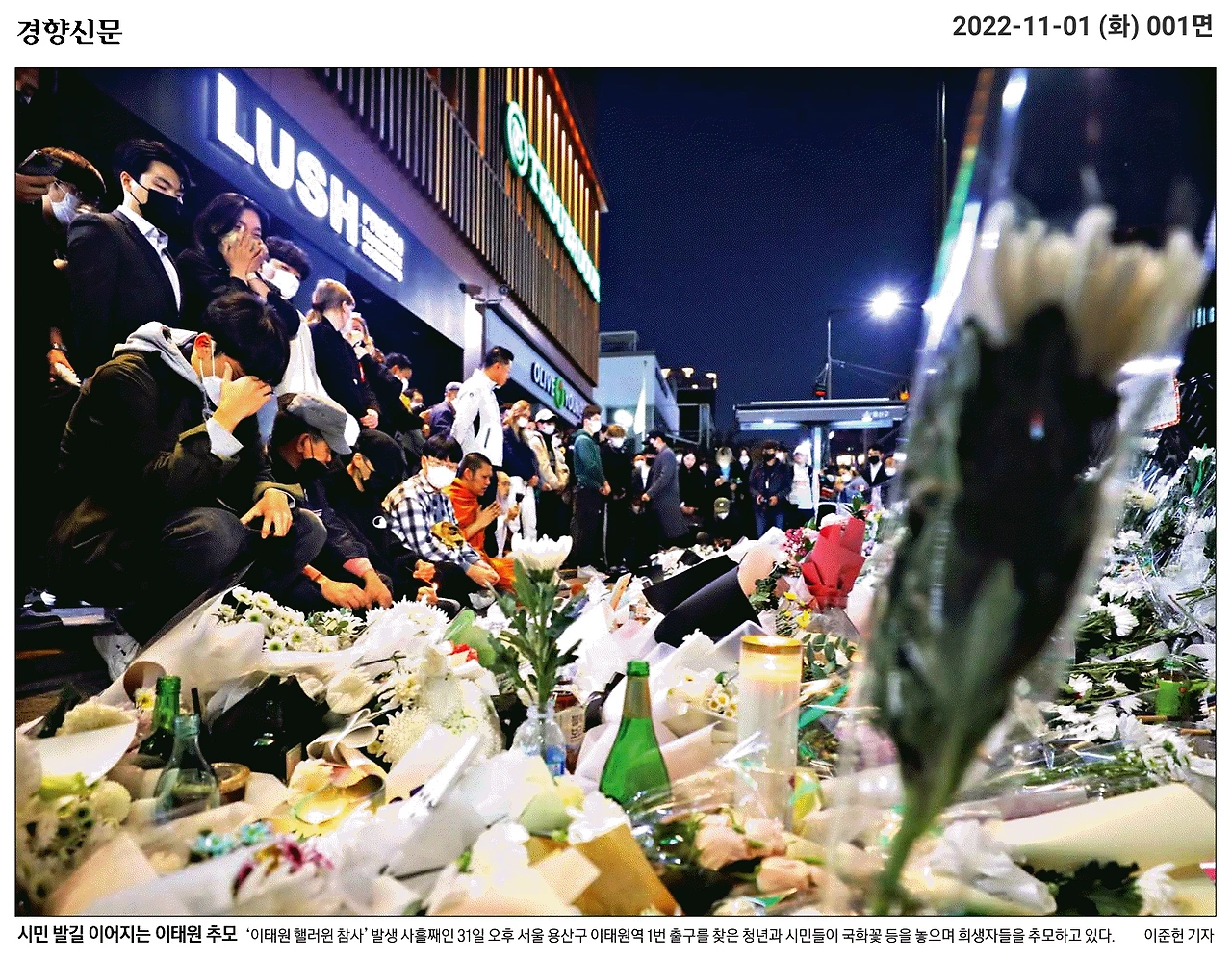 지난 29일 밤 서울 용산구 이태원에서 156명의 사람이 목숨을 잃었다. 밤새 카카오톡 단체채팅방의 알림과 전화가 끊이지 않았다. 가족은 “이태원 가지 않았니”라고 물었고 친구들은 “넌 괜찮냐”고 물었다. “집이야”라고 답하면, “대체 이게 무슨 일이냐”는 한탄이 이어졌다.