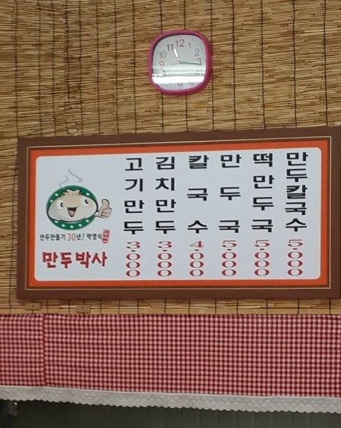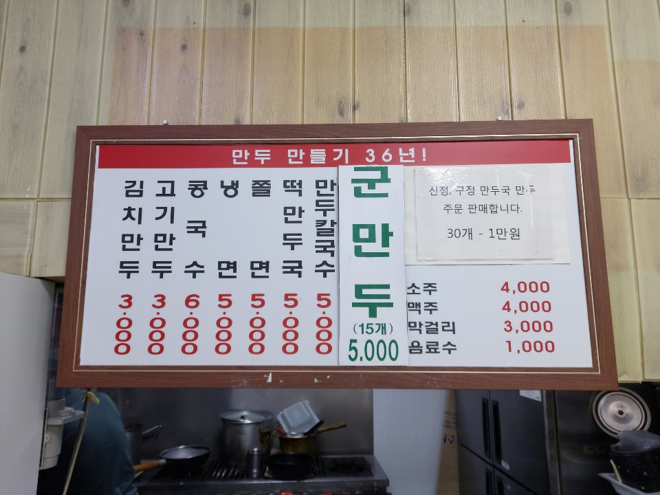 만두국을 기다리면서 메뉴판 옆을 힐끔 보니 아...