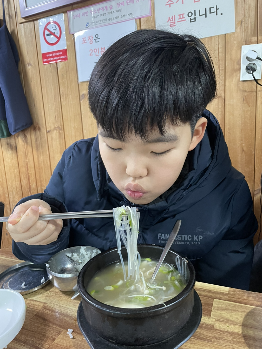 저녁으로 혜성이가 그동안 먹었던 짜장면을 먹을까 하다가 모험을 해봤다. 순대국 식사.
