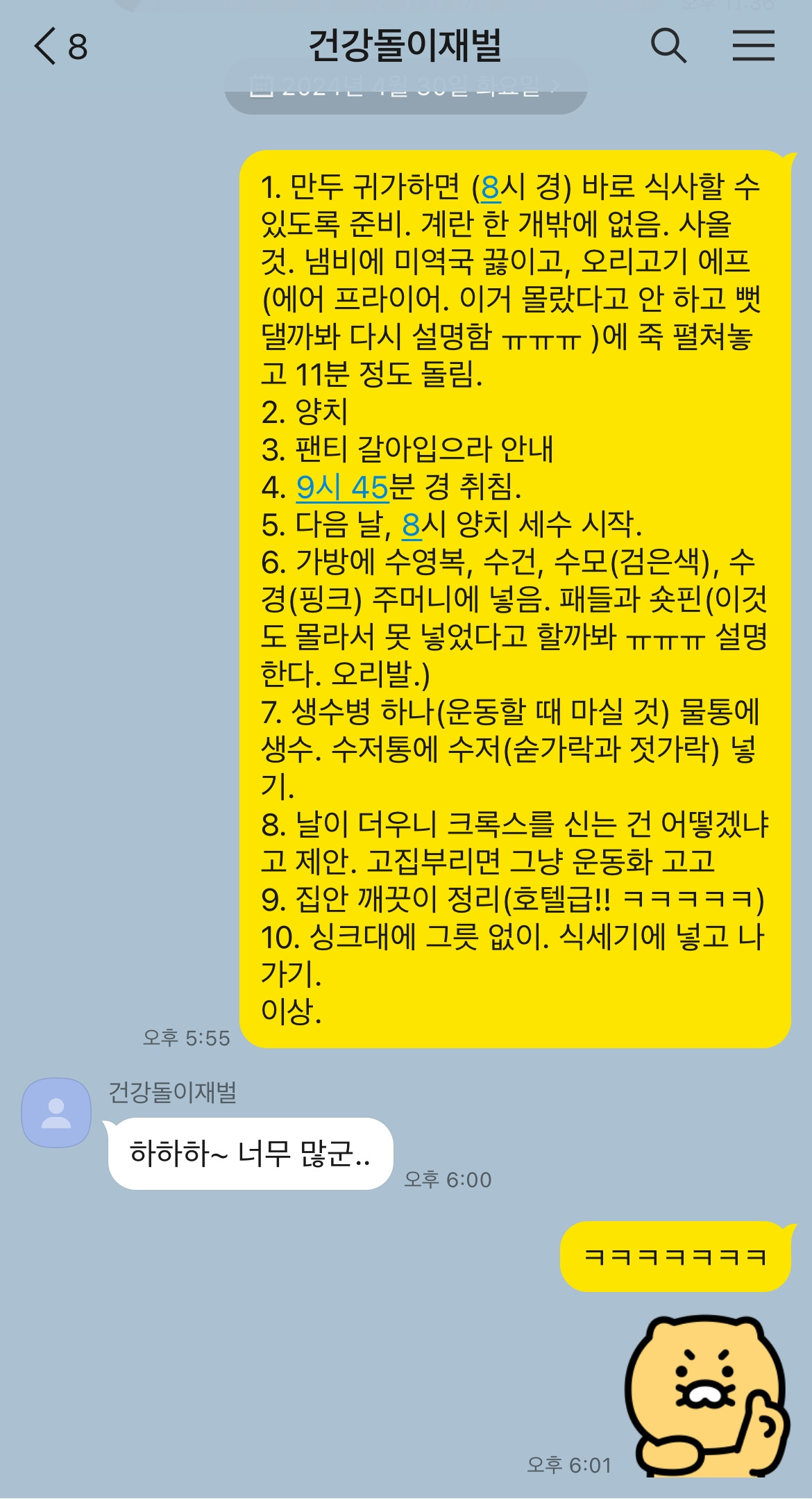 남편이 혼자 있으면 일상생활이 안 돼서 어디 갈 때마다 꼼꼼하게 부탁을 한다.