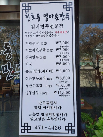 내가 맵고 칼칼한 김치맛을 내는 김치만두를 무척 좋아한다는 것을 알게 된 어떤 분이 소개해주신 곳이다.