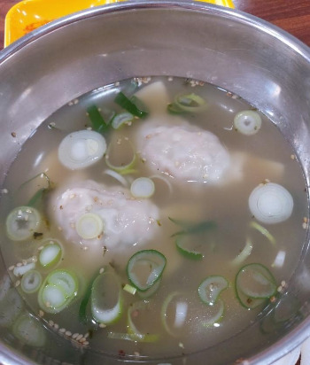 백종원의 3대 천왕에 보면 이 국물이 멸치하고 디포리로 낸 국물이라고 한다. 만두국은 사골국물로 만들어도 묵직하니 맛있지만, 이렇게 잔치국수 끓이듯 멸치국물로 잡아도 아주 시원하다. 과연 멸치향이 후욱 끼친다.
