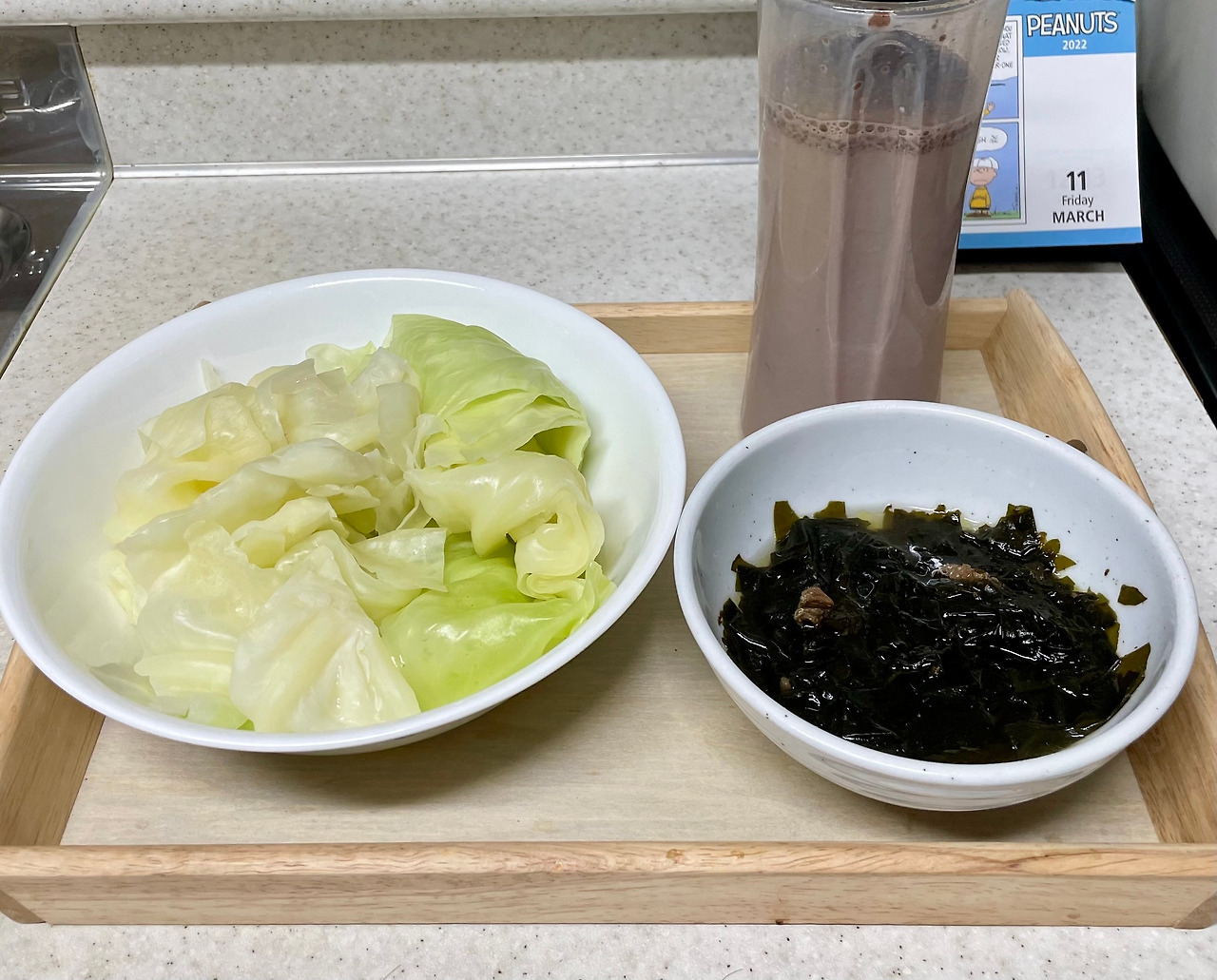그리고, 해조류의 가장 큰 장점. 먹으면 뱃속이 깨끗하게 정리가 되는 느낌. 근육량 늘린다고 고기 엄청 먹고 나면 뱃속이 아주 편안하지는 않다. 오히려 평소에 소식하는 편에 가까웠던 터라 이렇게 식단 하는 것도 배부르다. (어제, 그제는 단백질 셰이크 1회도 생략했다) 그런데, 마지막 저녁으로 해조국수를 쫄면 양념 반의 반스푼과 함께 비벼 먹으니 정말 꿀맛. 그리고 편안한 뱃속의 평화가 찾아왔다.
