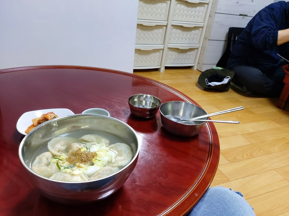 들어가니 어떤 아저씨께서 혼자 만두국을 아주 맛있게 드시고 계신다. 아저씨랑 최대한 안 어색한 자리가 어디일까 사뭇 고민하다가 저 둥근 상 쪽에 자리를 잡고 앉았다.