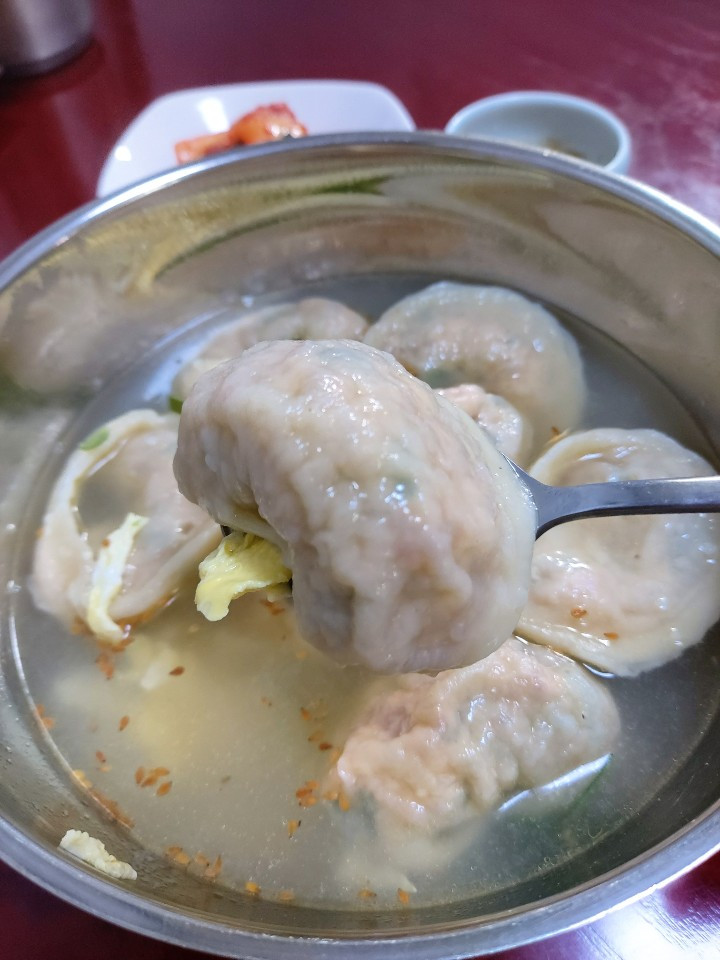 어떤 음식점이나 가서 김치를 먼저 맛본 후, 김치를 주인장께서 직접 담았으면 고마운 마음에 기본 별 넷, 게다가 맛있으면 다른 음식들도 훌륭할 것이라는 기대를 가지고 별 다섯 개를 마음속으로 매긴다. 그리고, 거의 그 예측은 틀린 적이 없었는데, 역시 할머니 만두국집도 정말 너무너무 훌륭한 김치를 내주셨다. 집에서 담근 살짝 큼큼하고 시원한 맛인데, 슴슴한 만두국과 잘 어울린다.