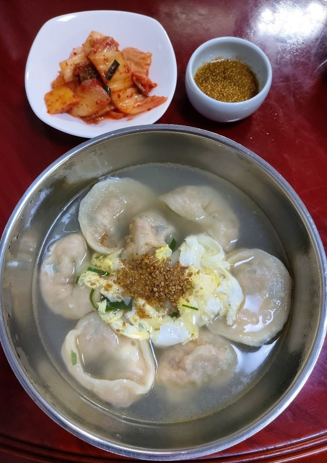 먼저 만두국을 주문했다. 한 그릇에 열 알이 들어간다고 하는데, 나는 그게 좀 많지 않을까 하고 조금만 덜어달라고 말씀드리니 잠시 후 만두 여덟개가 소담하게 담겨져 나왔다.