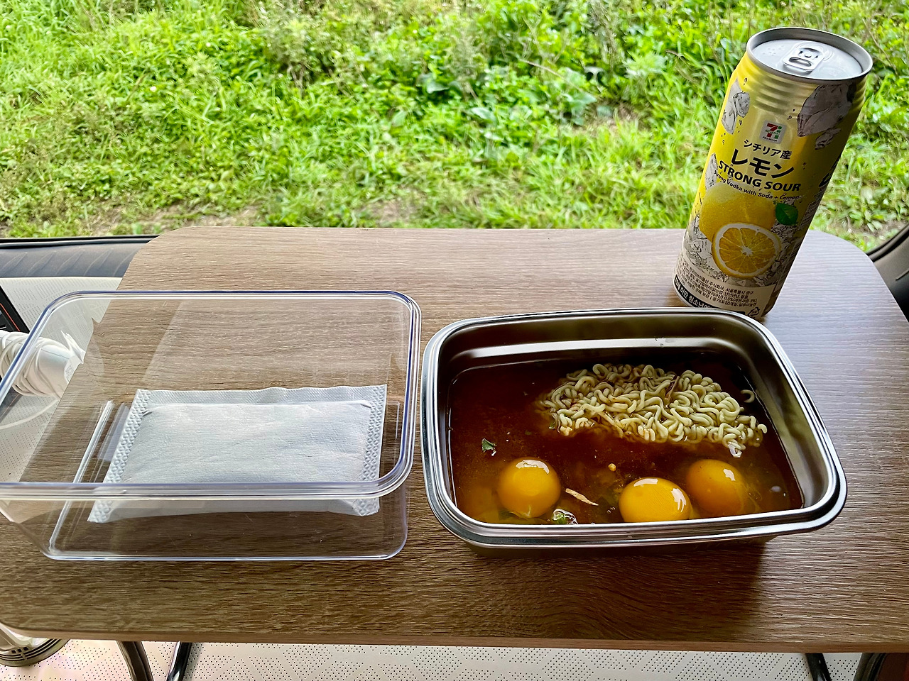 비록 비화식으로 끓인 라면에 하이볼 한 캔으로 저녁을 해결하고, 그리고 보냉백에는 편의점 편육이 하나 대기하고 있지만, 이것만으로도 나는 미슐랭 쓰리스타 레스토랑 와 있는 것과 다름없다. 미슐랭 식당, 분명히 내 기억에 파인 다이닝 쓰리스타는 가본 적도 없겠지만 하나도 아쉽지 않다.