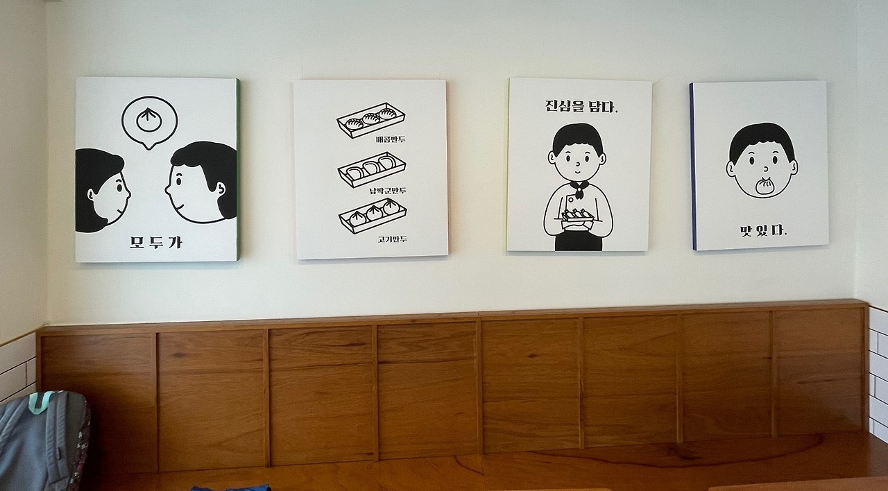 매장 한 벽면에는 이렇게 귀여운 그림들이 걸려 있다. 아까 세워둔 입간판도 그렇고, 이런 그림도 그렇고 분명히 주인아저씨의 순박한 솜씨 같지 않은데 무얼까 궁금했다. 역시나, 사모님께서 미술 전공한 디자이너시란다.