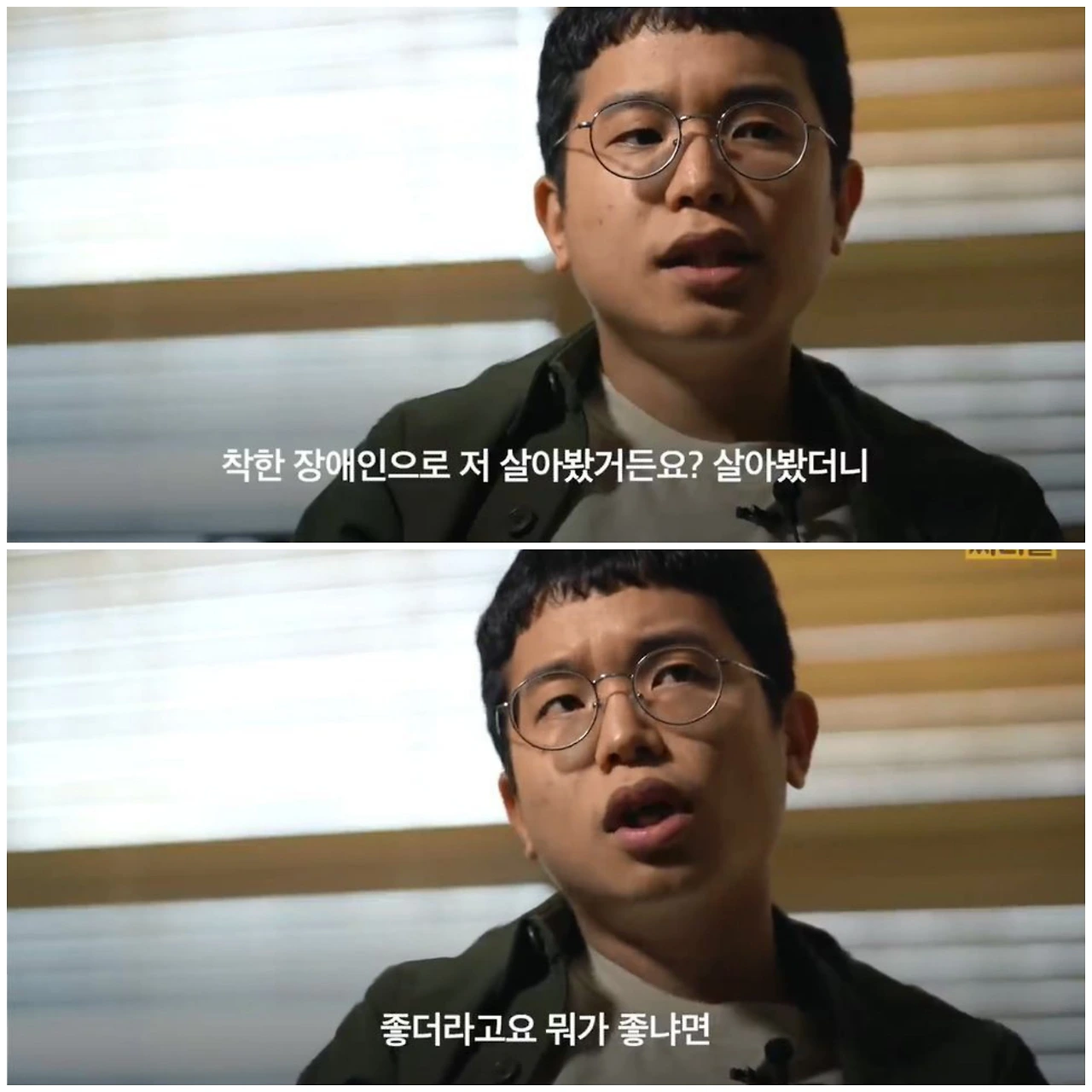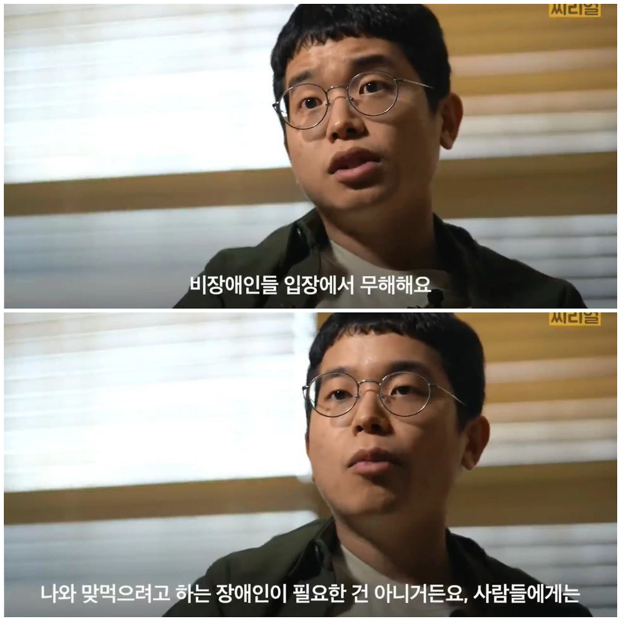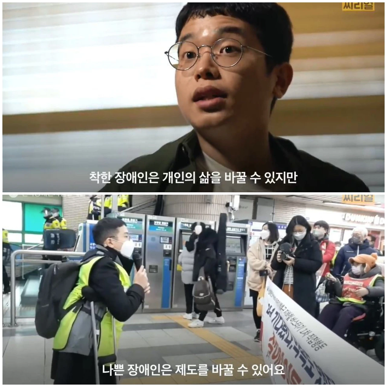 ["장애인 범죄 집단"으로 이직한 이유]라는 도발적 제목의 영상을 봤다. 그 영상의 주인공 변재원 씨는 움직임이 불편한 장애인이었지만, 한예종을 나와 서울대 석사를 따고 구글 코리아의 인턴까지 한 소위 사회에 잘 적응하는 인물이었다. 그러다가 코로나 이후 일반인들에겐 '삶의 불편'의 문제가, 장애인들에겐 '삶의 위협'의 문제로 다가오고, 그럼에도 대중들은 관심이 없다는 걸 깨닫고 행동에 나서야겠다고 결심했다. 그리고 전국장애인차별철폐연대 의 정책국장이 되었다.