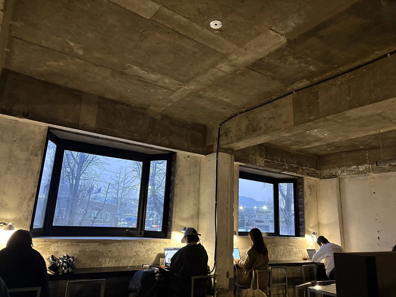 2층 공간은 조도가 낮아서 낮에도 자연광만이 유일하게 공간을 밝힌다. 형광등 불빛을 좋아하지 않는 나는 어둑한 공간에서 아늑함을 느낀다. 은둔하고 싶어서 찾아드는 공간인만큼 옆자리에 누가 있는지 의식하고 싶지 않다. 각자가 자신의 작업에 몰두해 있는지라 볼일은 더구나 없다. 날이 저물어 책조차 읽기 힘들 땐 테이블 위의 조명 밝기를 조절한다.