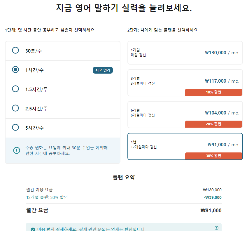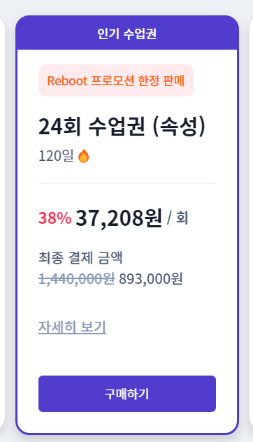 40분짜리 수업을 24회 들을 수 있으며 4달동안 사용 가능하다.