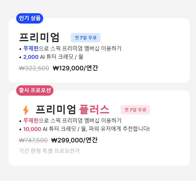 가격은 프리미엄은 연간 129,000원/ 프리미엄 플러스는 연간 299,000 원이다.
