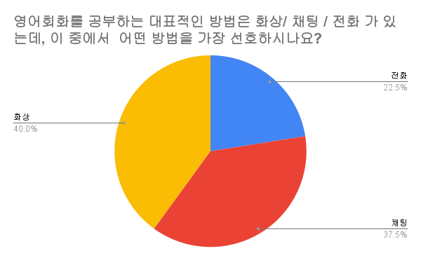 3. 영어회화를 온라인으로 학습할 경우 화상/채팅/전화 중 가장 편한 방법은 무엇인지 등이었다.