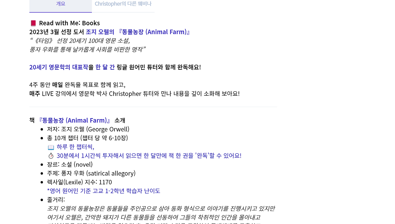 콘텐츠 중에 눈길이 갔던 것은 '함께 읽기반'이었다. 잠깐 봤는데 굉장히 수준 높은 수업을 제공하는 것으로 보였다.