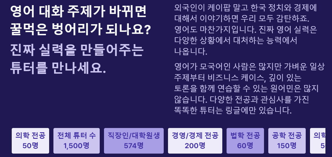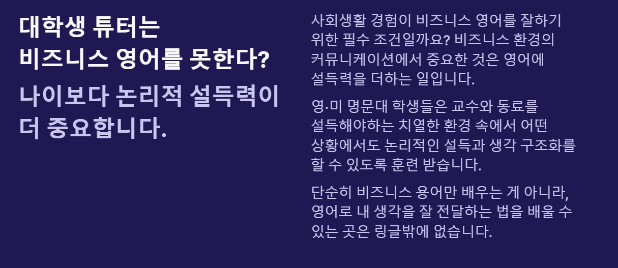이를 통해서 알 수 있는 것은 영어를 쓰는 외국 기업에 취직을 희망하는 취준생들 역시 링글에 메리트를 느낄 수 있다는 것이다.