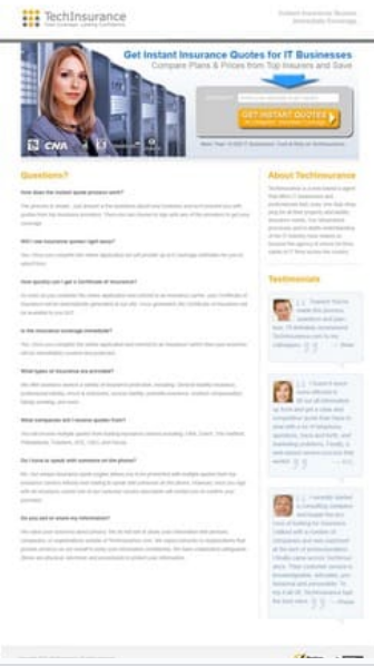 Techinsurance.com wanted a higher conversion rate for their pay-per-click campaign. Originally, all traffic was directed to their website’s homepage.