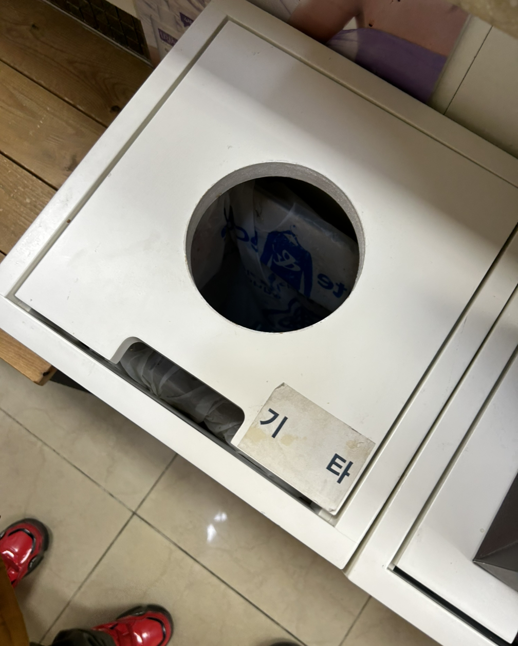 아이가 보고 있는 쓰레기통에는 진짜 ‘기타’라고 쓰여있다. 기타 등등의 기타.