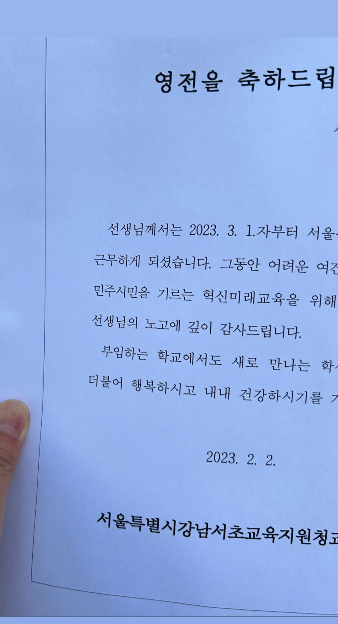 그러다 강남 지역을 떠나기로 결심했다. 물론 부장교사에 대한 부담감이 없었다면 거짓말일 것이다. 하지만 그 보다 더 큰 이유가 있었다.