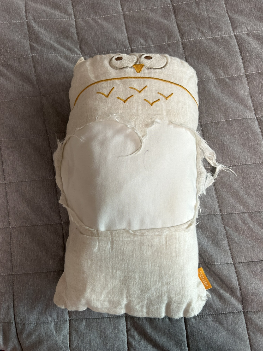 잠시 이 애착배게에 대해 설명하자면, 아이가 태어나자마자 얼떨결에 함께한 배게로, 슬플 때는 부엉이 베개를 안고 울고, 기쁠 때는 이 베개를 안고 웃는다. 다행히 지금은 아이가 좀 커서 언제 어디나 데리고 다니는 정도는 아니지만, 1박 2일 여행을 갈 때면 꼭 데려간다.(아이는 늘 여행을 갈 때면, 부엉이 베개와 함께 여행하고 싶다고 말한다.)