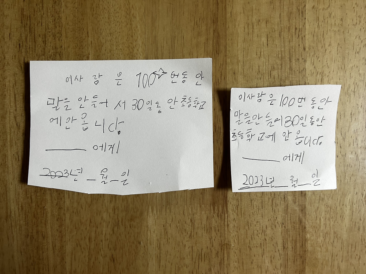 30일 동안 초등학교에 안 옵니다.