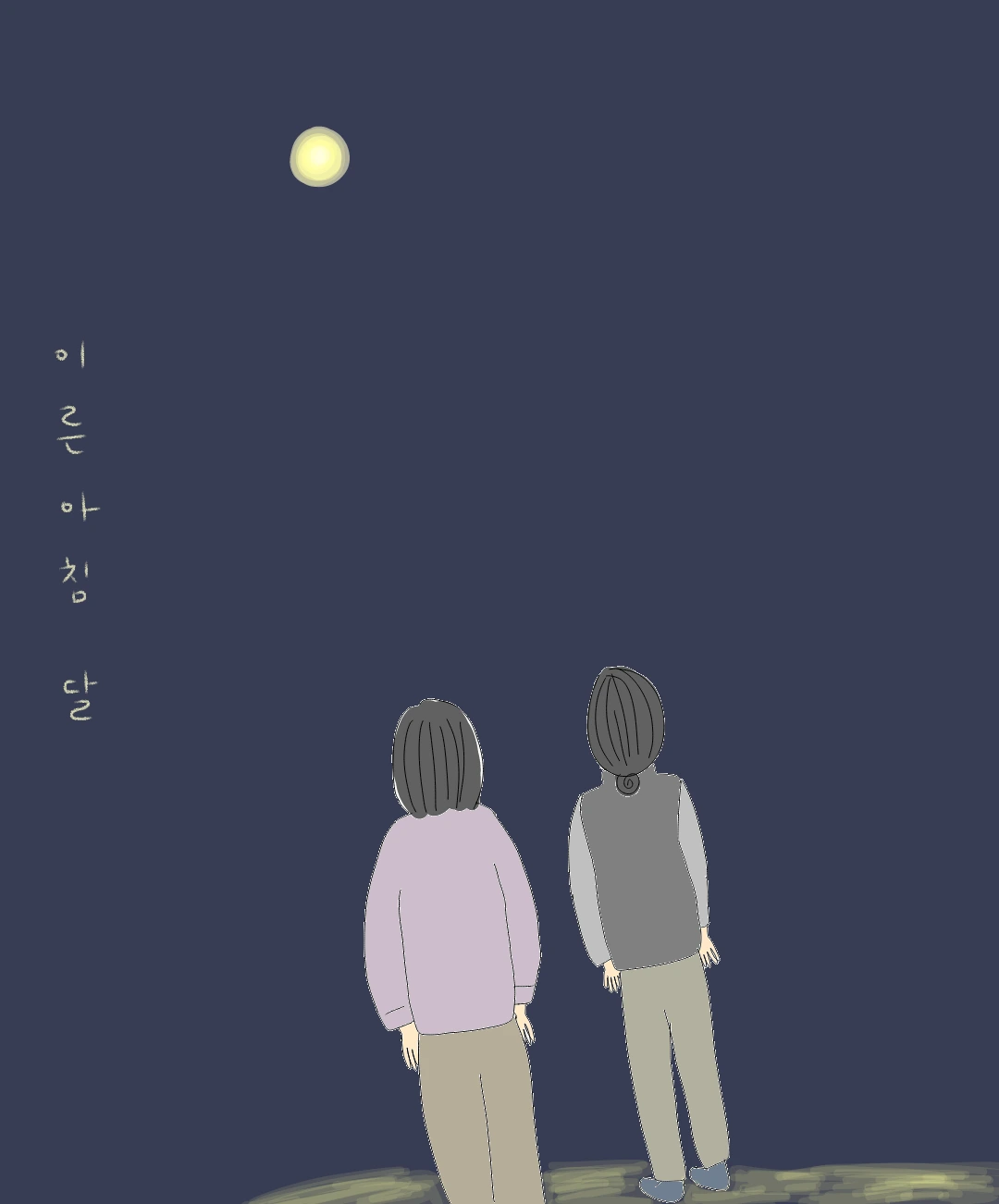 아침에 해뜨기 전에 일찍 일어나면 달이 떠있다.