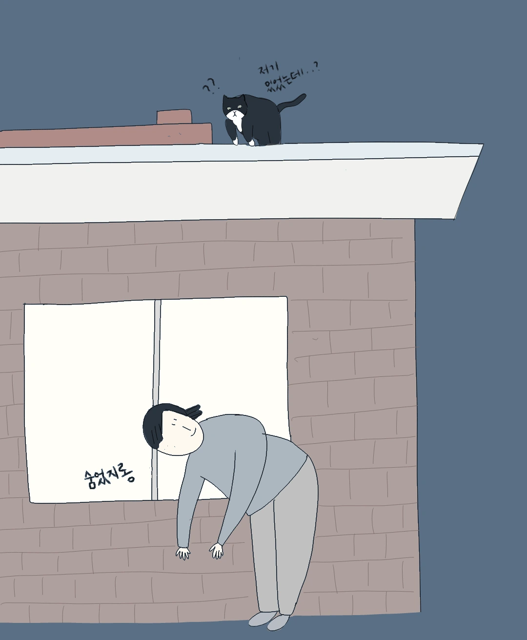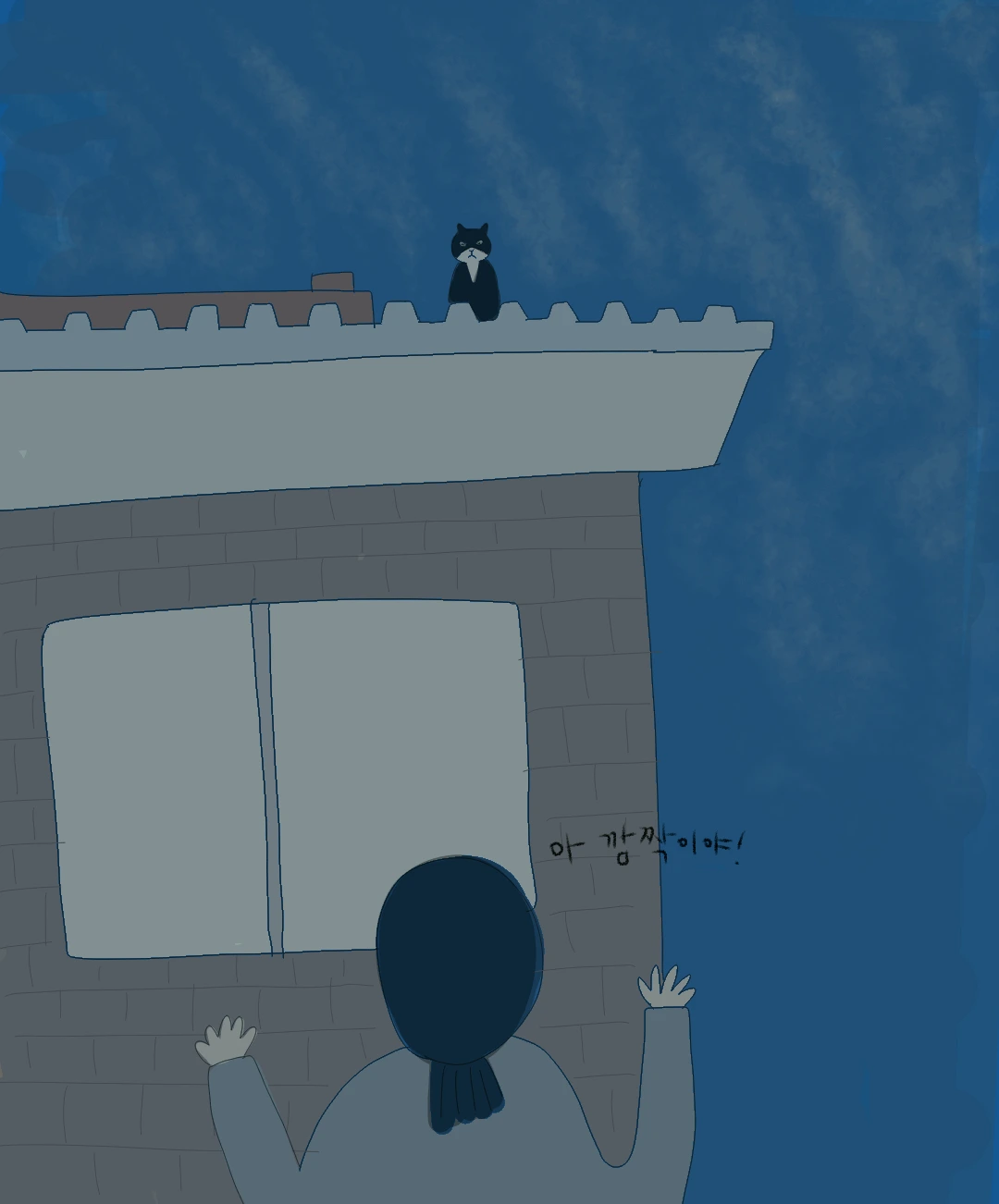 날도 어두운데 지붕에서 그렇게 쳐다보고 있어서