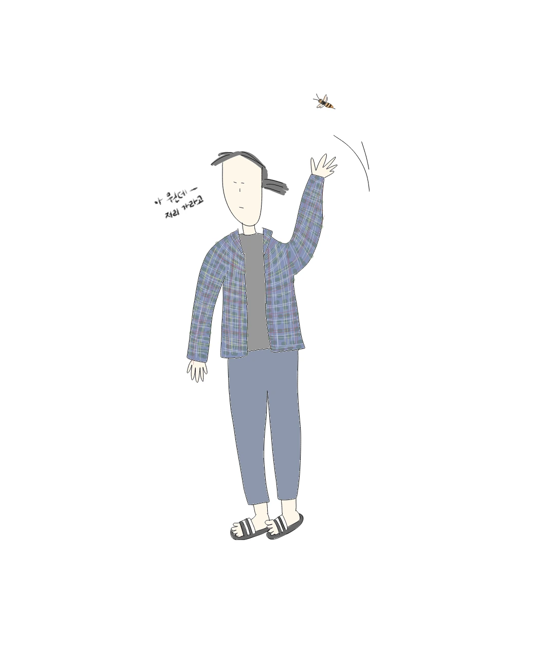 뭐가 얼굴 근처를 날아다녀서 손으로 휘휘 쫓았다