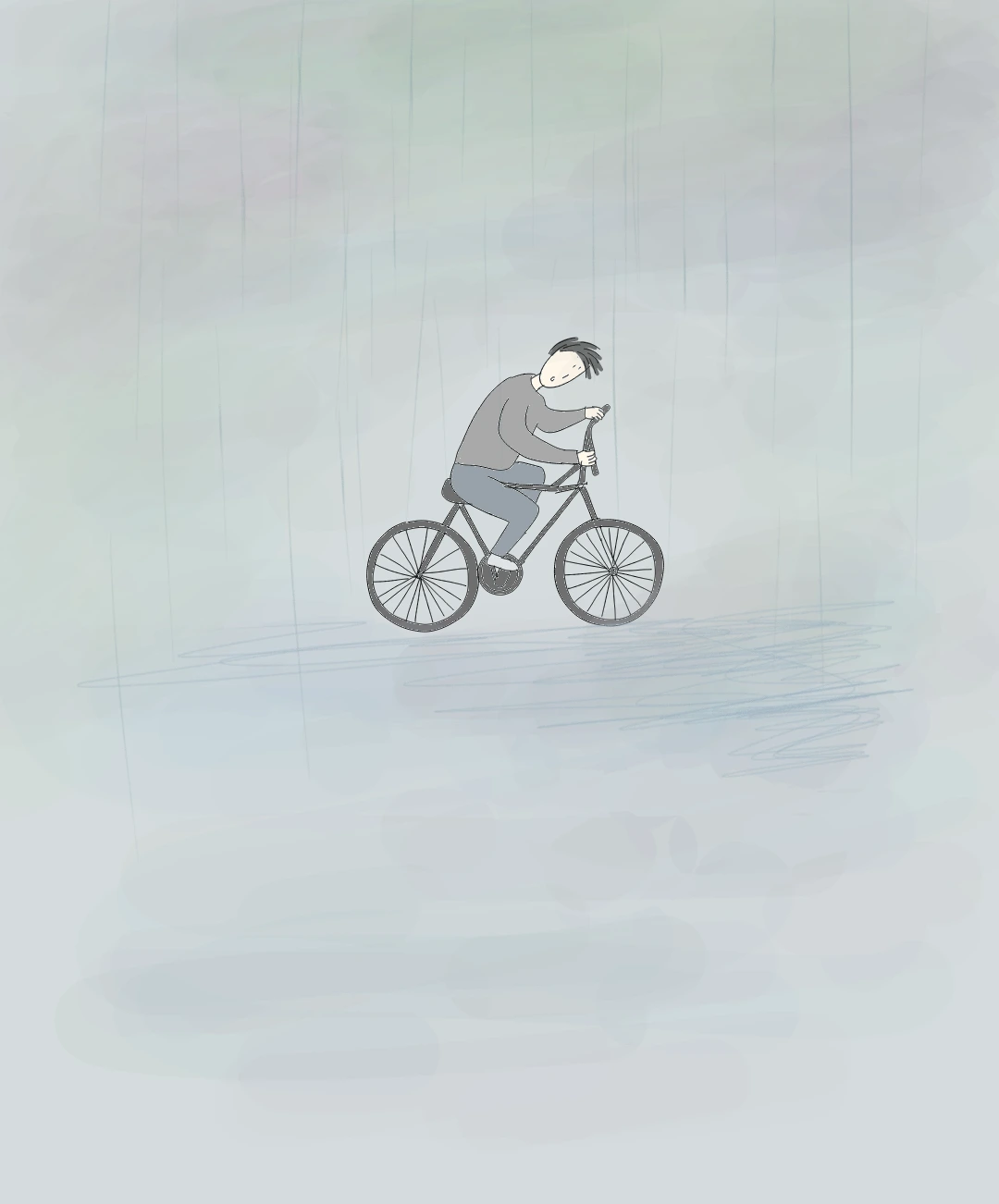 어떤 사람이 빗속을 자전거를 타고 빠르게 지나갔다