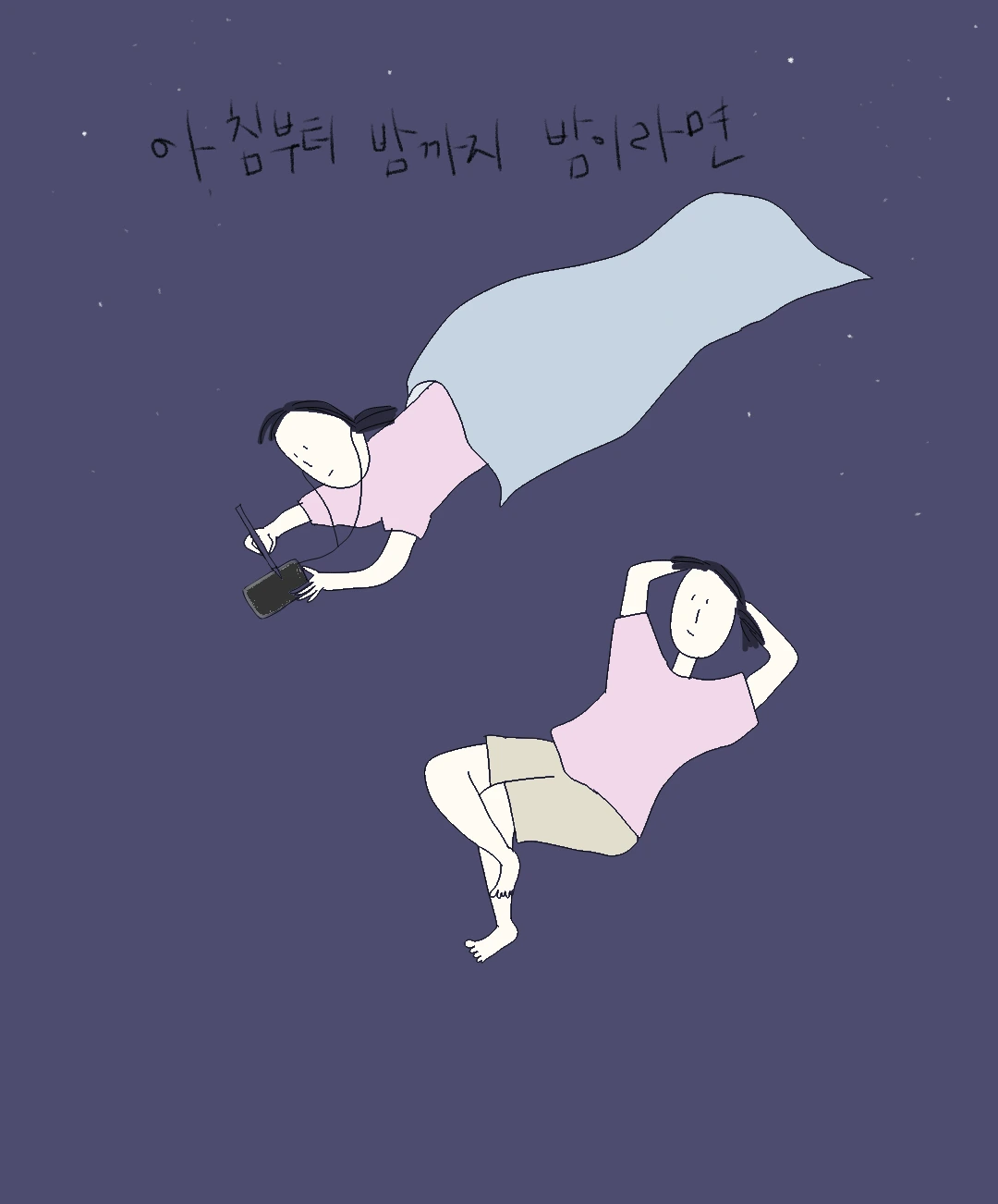 이어폰으로 노래를 들으며 내가 좋아하는 일기를