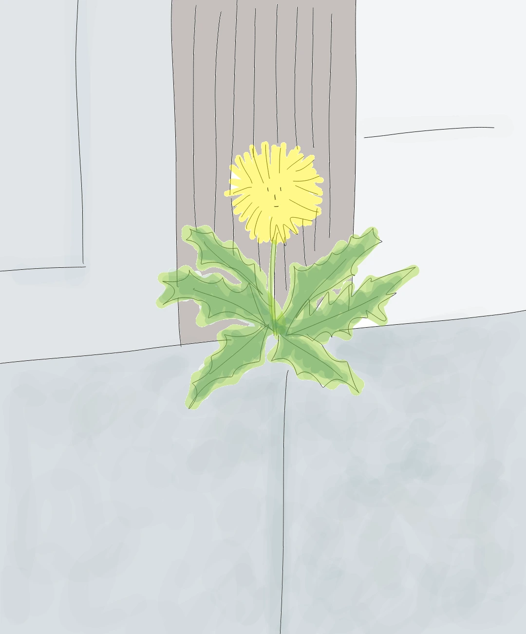 우리 집 현관문 틈에 민들레 하나가 자란다.