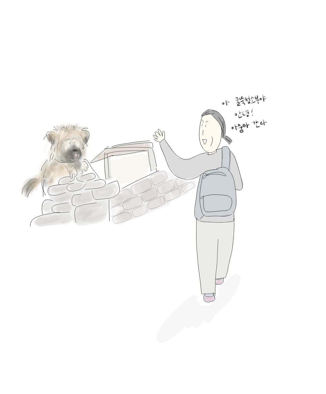 굴뚝이는 엄마랑 우리가 지나가면 꼬리를 흔들고 좋아하는데 그건 먹을 것 때문인 것 같다.