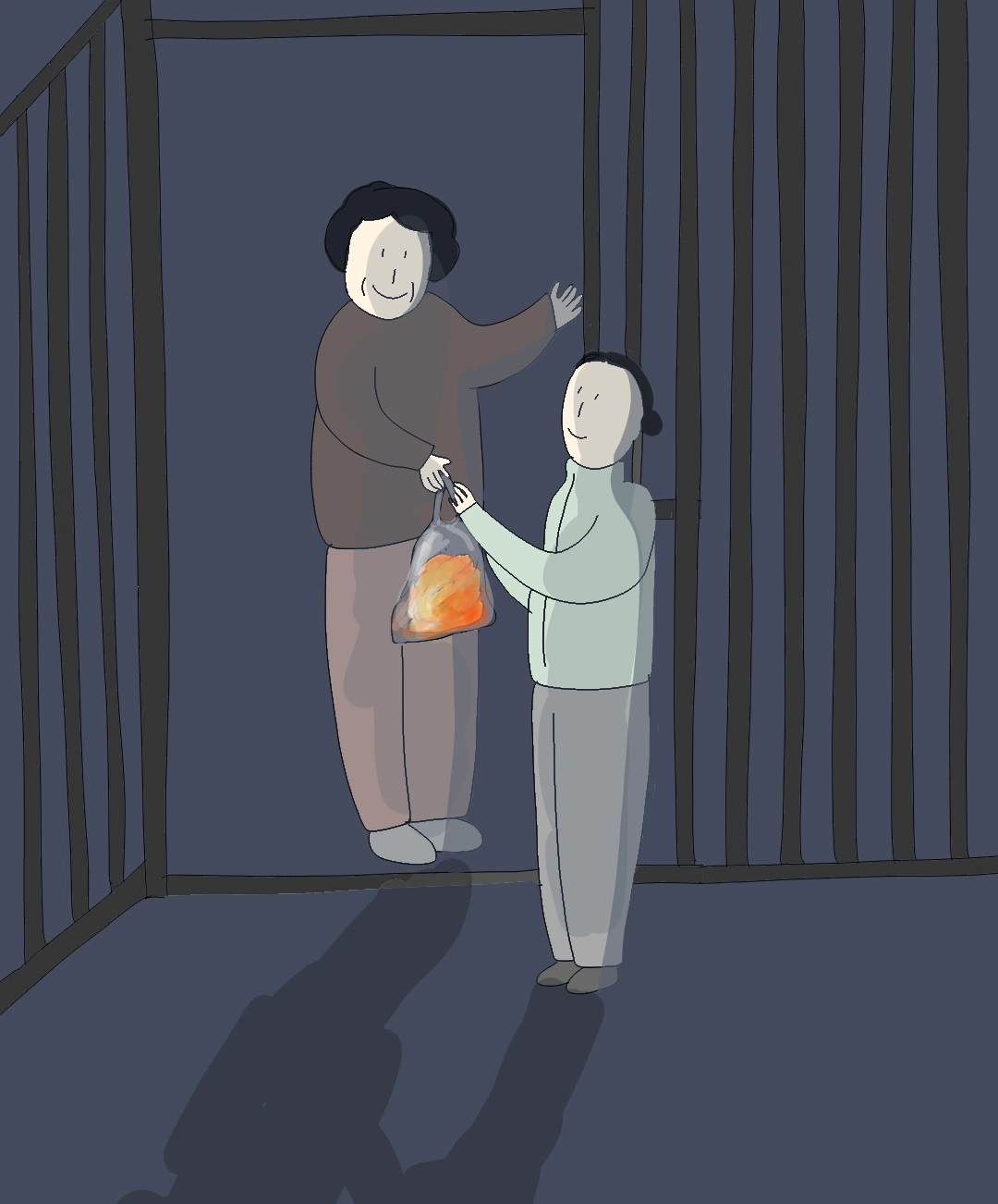 오늘 덕구네 아주머니가 김장했다고 김장 김치를 한 봉지 주셨다. 덕구는 개 이름이다.