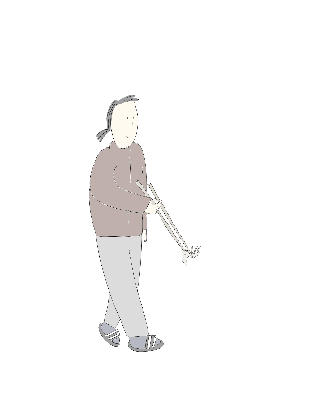 나는 긴 나무 막대기 두 개를 젓가락처럼 사용해서