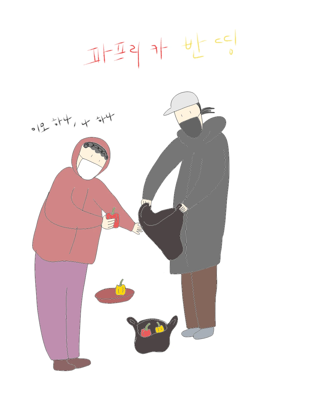 한 아주머니가 "파프리카가 너무 비싸다~ 이모랑 나랑 사서 반반 나누자"라고 했다.
